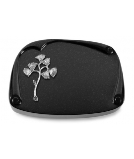 Grabbuch Papyros / Indisch Black mit Aluminium-Ornament Ornamente und Schmuckmotive aus echtem Aluminium, dauerhaft korrosionsbeständig und fest auf dem Naturstein montiert.