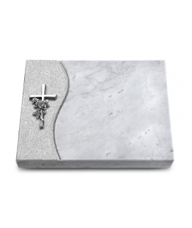 Omega Marmor/Wave mit Aluminium-Ornament Ornamente und Schmuckmotive aus echtem Aluminium, dauerhaft korrosionsbeständig und fest auf dem Naturstein montiert. Geben Sie Ihrer Grabgestaltung die individuelle Note.