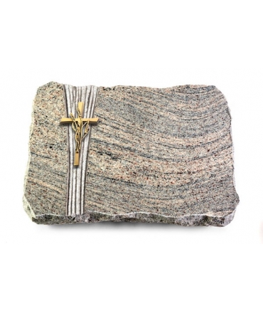 Grabplatte Juparana/Strikt Kreuz/Ähren (Bronze)